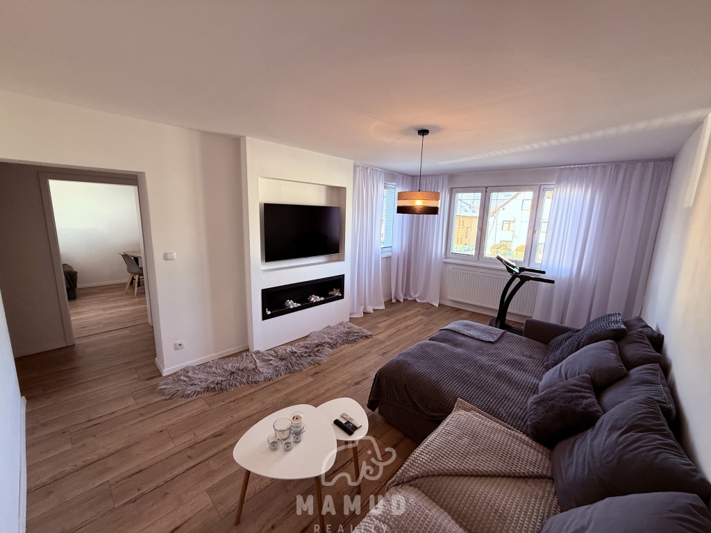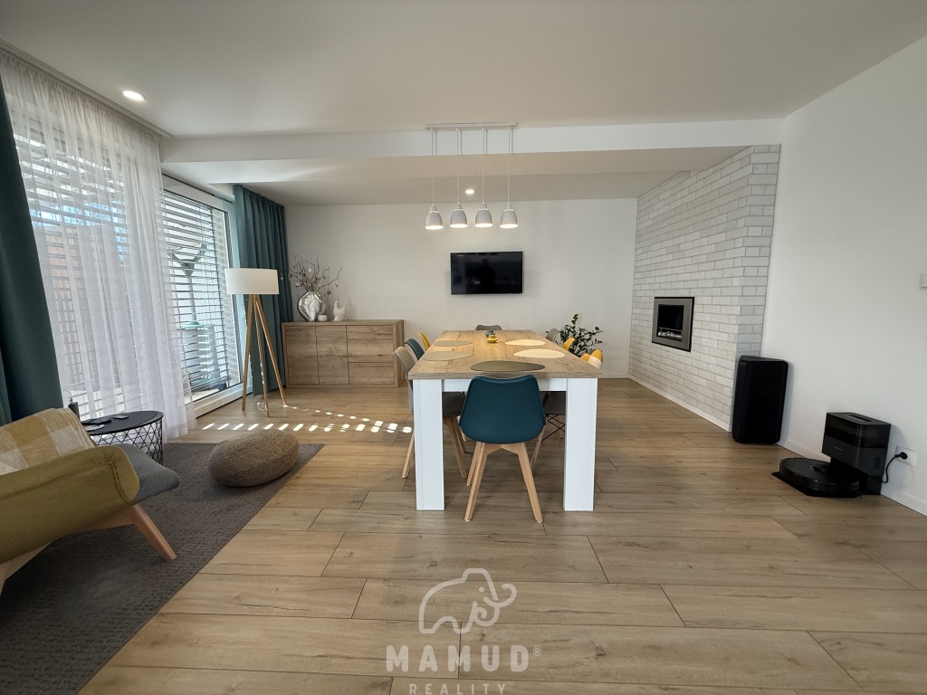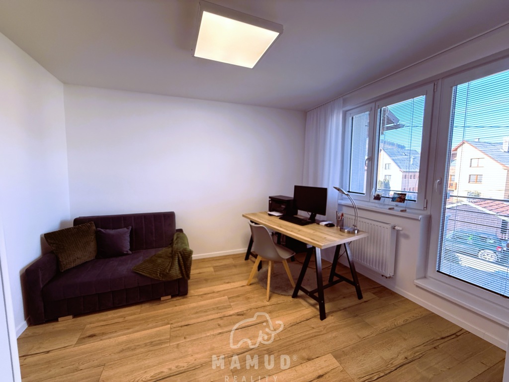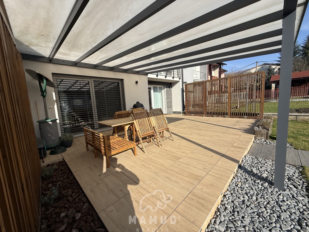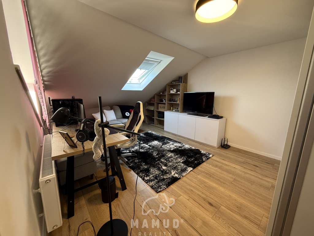 Mamud reality ponúka výhradne na predaj priestranný rodinný dom v radovej zástavbe na okraji obce Kysucký Lieskovec, ktorý sa nachádza na slnečnom pozemku o rozlohe 400m². Poschodový tehlový dom prešiel kompletnou modernou rekonštrukciou v roku 2020. Napojený na všetky siete: vodovod, kanalizáciu, elektriku a plyn. Úžitková plocha domu je 300m² a dispozične je rozdelený na dennú a nočnú časť. Prízemie: priestranný vstup vrátane vstavaných šatníkov, práčovňa/technická miestnosť, samostatné WC a priestranná obývacia izba s kuchyňou a východom na zastrešenú terasu. Na 1.poschodi je hosťovská izba a spálňa prepojená so šatníkom a kúpeľnou. Na 2.poschodi sú dve detské izby vrátane šatníkov a spoločnej kúpeľne. Interiér domu je kompletne zariadený, disponuje kvalitným nábytkom na mieru, elektrickými žalúziami a vstavanými spotrebičmi. Kúrenie zabezpečuje plynový kotol s vodovodným podlahovým vyhrievaním a bio krb. Exteriér ponúka záhradný domček, garážové státie. Tiché prostredie, upravená záhrada a okolie mimo hlavnej cesty poskytuje dokonalé bývanie nielen pre mladú rodinu. Pre bližšie informácie kontaktujte realitnú kanceláriu telefonicky na 0905 855 925 alebo emailom na mudry@mamud.sk Odporúčame vidieť.